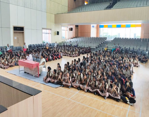 An inter-house Spell Bee Competition was conducted for the students of Classes VI to VIII in the Kandasamy Convention Hall (The Hi-tech Auditorium).