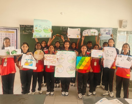 Children understood that climate change refers to long-term changes in temperature and rainfall patterns. Due to climate change, India is experiencing rising temperatures, irregular monsoons, floods, droughts, cyclones and melting glaciers in the Himalayas.