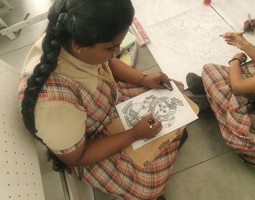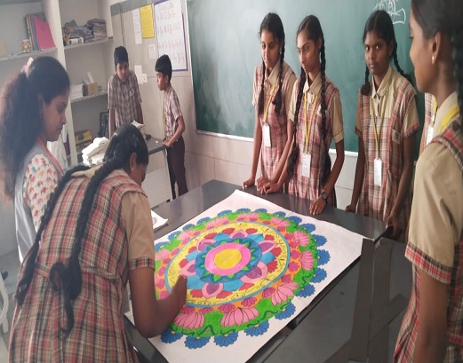 Activity-2 Date: 11.03.2026 Day: Wednesday Description: Mandala Art is a creative activity that helps children expresses their imagination through patterns and designs. When children create mandala art as a team, it encourages cooperation, creativity, and teamwork. In this activity, children work together to design a large mandala starting from a central point and extending outward with repeated patterns such as circles, petals, lines, and geometric shapes. Working as a team helps children share ideas, learn from each other, and develop patience and coordination. At the end, the completed mandala becomes a wonderful example of team spirit and creativity.