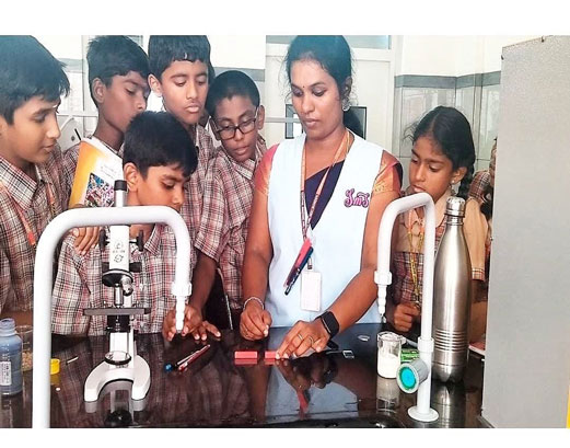 Activity 2 - Science Club Activity – Observing Lactobacillus in Curd Class VIII students explored the microscopic world by observing Lactobacillus bacteria in curd using a microscope. The activity helped them understand the role of beneficial bacteria in curd formation and sparked curiosity about the unseen world of microorganisms.